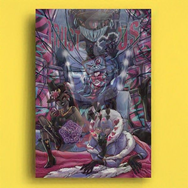 A group of bad guys: a TV, a moth, a doll and a shark.